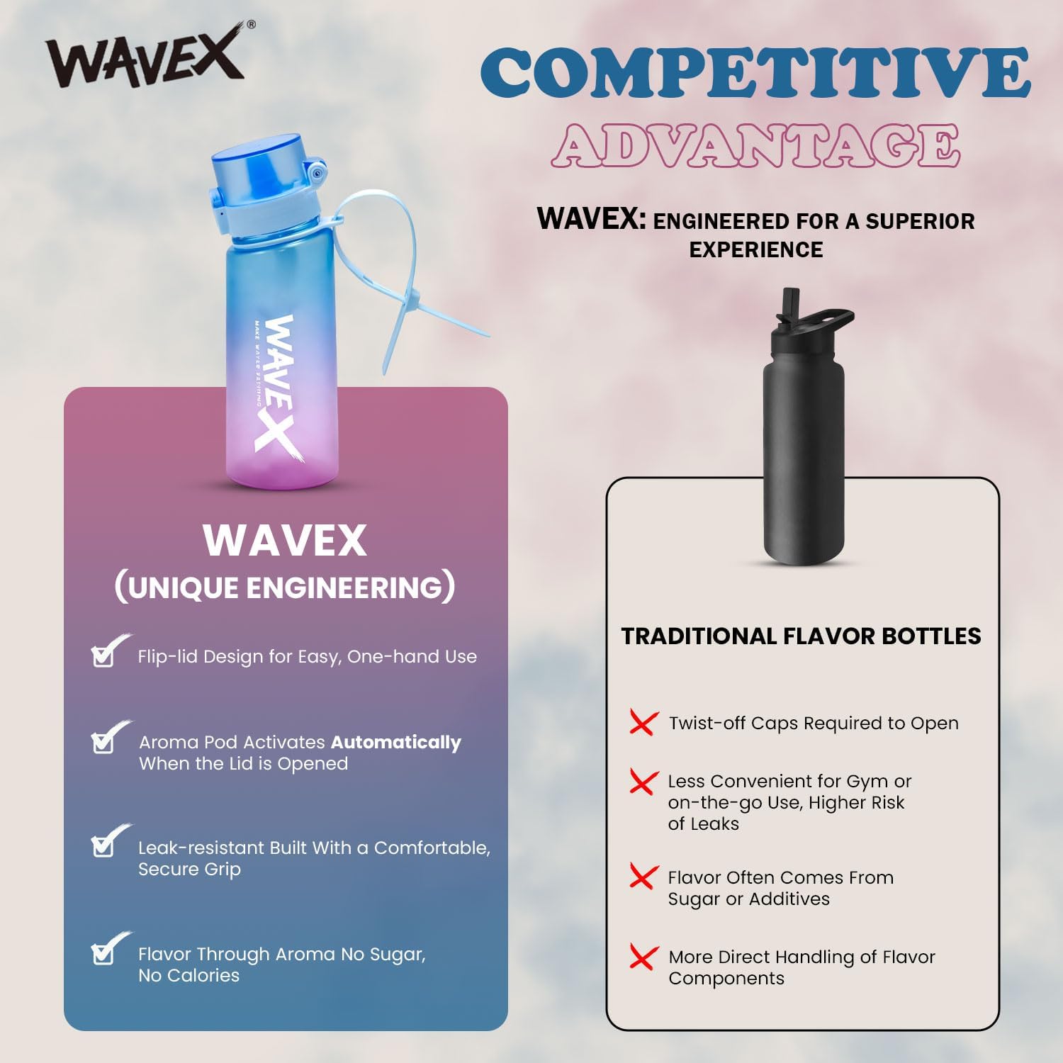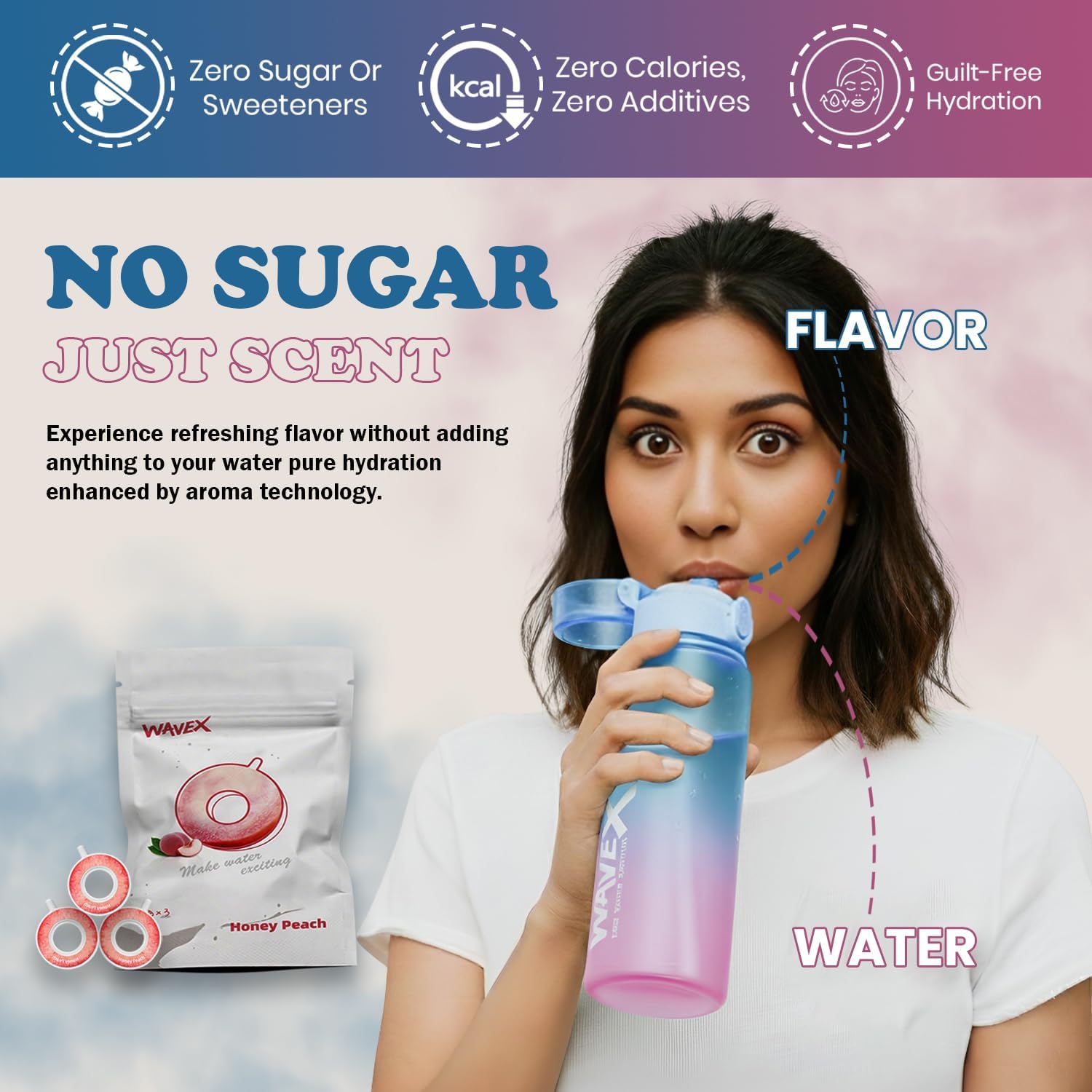 ✨𝑨𝒓𝒐𝒎𝒂-𝑩𝒂𝒔𝒆𝒅 𝑯𝒚𝒅𝒓𝒂𝒕𝒊𝒐𝒏 (𝑰𝒎𝒑𝒐𝒓𝒕𝒂𝒏𝒕 𝒕𝒐 𝑲𝒏𝒐𝒘): This scented water bottle delivers flavor through aroma, not sweetness. If you normally drink sugary or strongly flavored beverages, the experience may feel lighter at first. Individual perception may differ, and many users notice the experience improves after a few uses as their senses adapt. WAVEX is designed for people who prefer a clean, refreshing flavored water experience without sugar, sweeteners, or additives.