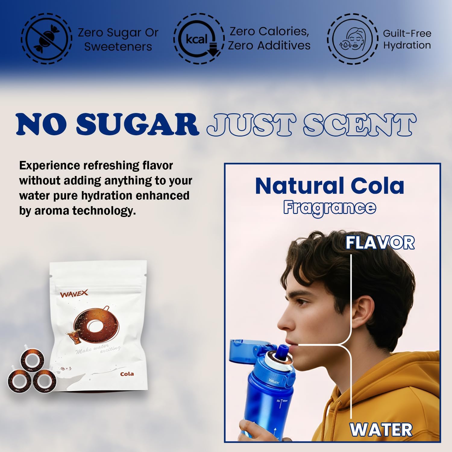 ✨𝑨𝒓𝒐𝒎𝒂-𝑩𝒂𝒔𝒆𝒅 𝑯𝒚𝒅𝒓𝒂𝒕𝒊𝒐𝒏 (𝑰𝒎𝒑𝒐𝒓𝒕𝒂𝒏𝒕 𝒕𝒐 𝑲𝒏𝒐𝒘): This scented water bottle delivers flavor through aroma, not sweetness. If you normally drink sugary or strongly flavored beverages, the experience may feel lighter at first. Individual perception may differ, and many users notice the experience improves after a few uses as their senses adapt. WAVEX is designed for people who prefer a clean, refreshing flavored water experience without sugar, sweeteners, or additives.