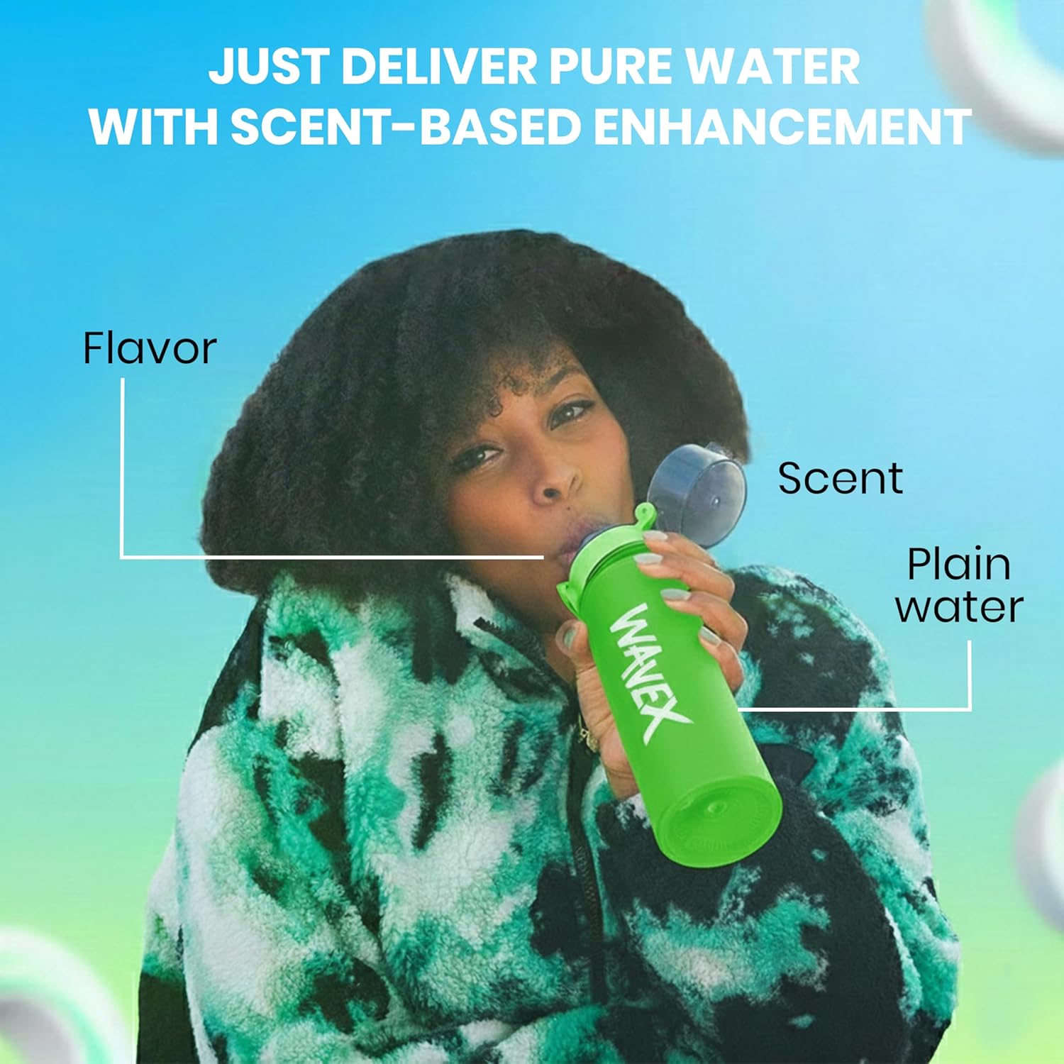 Designed to elevate your hydration routine, this durable and lightweight bottle delivers pure water with scent-based enhancement — a non-consumable accessory that enriches your drinking experience.At WaveX, we’re determined to make plain water your favorite beverage of choice. We need to stay hydrated every day, so let’s make every sip enjoyable. Our durable travel bottles are designed to improve your hydration experience with the added benefits of flavor and fragrance. Our 600ml capacity high quality plastic water bottles are perfectly sized for everyday use.